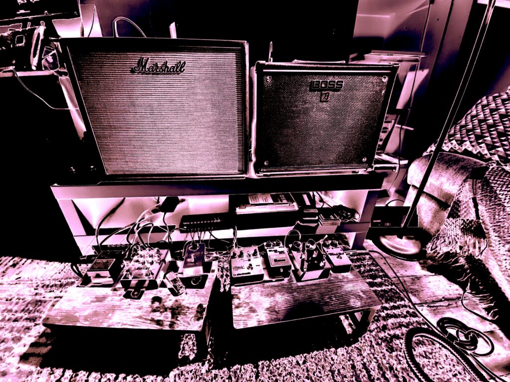 A few Guitar Hangers for the few guitars are ordered, a plan is underway to wall mount the pedals on a board for ease of access and to free up some more floor space. Which is now hugely improved by the removal of the exercise bike.